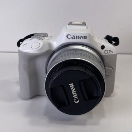 White Canon EOS R50 4K Video Mirrorless Camera with RF-S 18-45mm f/4.5-6.3
